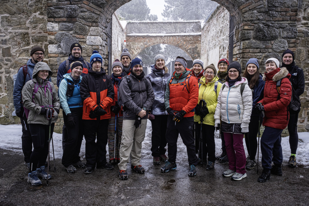 Von Nußdorf ging es entlang der Donau zum Kahlenbergerdorf und hier begannen auch schon die Herausforderungen. Der Nasenweg hinauf zum Leopoldsberg bot schwierige Bodenverhältnisse und dementsprechend langsam und vorsichtig wagten wir uns von einer Kehre zur nächsten den Berg hinauf. Durch gute Zusammenarbeit und gemeinsame Hilfestellung sind alle ohne Ausrutscher bei der Aussichtsterrasse an der Spitze der Nase angekommen.
