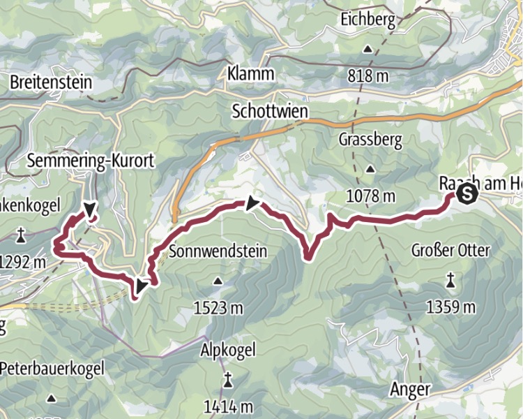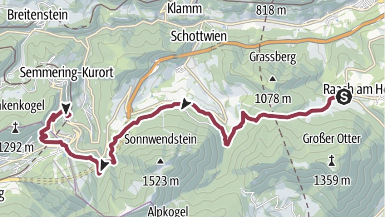 Wir treffen uns am Bahnhof Meidling und reisen mit dem Zug und dem Regionalbus zu unserem Startpunkt der Wanderung. Von Schlagl aus gehen wir entlang des Nordalpenweges zuerst in Richtung Maria Schutz. Dabei passieren wir die Schanzkapelle und machen nach ca. halber Gehzeit in der Gegend unterhalb des Sonnwendstein eine kurze Rast.